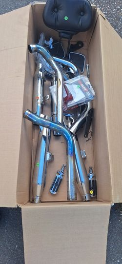 2 sets slide on mufflers and header pipe off 1995 Softtail. Also foot pegs and rear running boards. $250Laconia, NH
