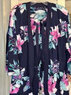 Carole Hochman Womens 2 Piece Lounge Set Blue Pink Hibiscus Cardigan & Pants PL$15Fullerton, CA