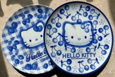 RARE 1998 Sanrio HELLO KITTY Cherry & Strawberry 8" Plates SET of 2$45Fullerton, CA