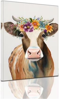 Wall Art Room Decor 12x16'' Framed Animal Paintings Headworn flower Cow Canvas $10Los Angeles, CA