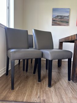 Crate & Barrel Lowe Smoke Grey Leather Dining Chair with Ebony Wood Legs$320San Pedro, CA