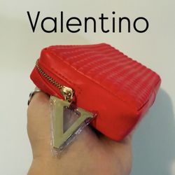 Authentic Valentino Designer Red Triangle Diamond Stud Grid Pouch Clutch Bag With Gold V $70Phoenix, AZ