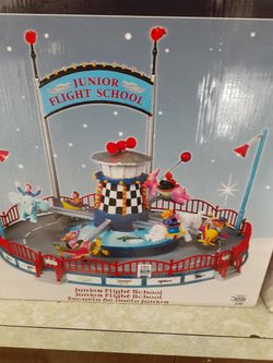 2007 Lemax Carole Town Junior Flight School Lighted Animated Carnival Ride WORKS GREAT