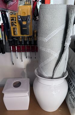 Ceramic Bathroom Tissue Box Holder, Rubbish Bin And Two Matching Bathroom Rugs $25White Plains, NY