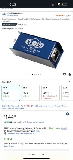 Brand New(Never Used) Cloud Lifter cL-1 Mic Activator$130Sacramento, CA