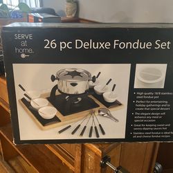 26 piece deluxe fondue set Harley used high quality stainless steel$40Roslyn, NY