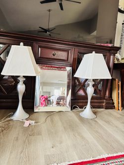 Silver Beveled Mirror With 2 Silver Lamp Set $50Montgomery, AL