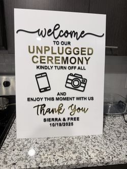 white acrylic unplugged sign$80Katy, TX