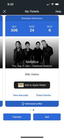 Metallica 8-11 Highmark Stadium$80Liverpool, NY