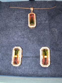 Bella Luce Esotica 9.30 CT Ctw Watermelon Tourmaline And Diamond Simulants Rose Earings And Pendent $350Hightstown, NJ