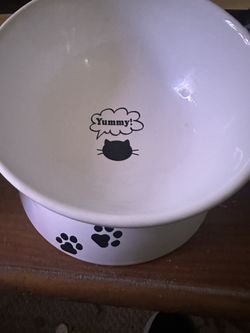 Elevated Tilt With Paw Printed Cat Food Bowl YHY Yummy White Ceramic$12Oxnard, CA