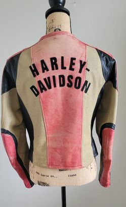 Harley-Davidson Women's Tan/Red/Black Leather Jacket, Size Medium $165Wilmington, DE