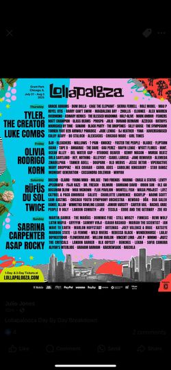 4 Day GA Lolla Tickets$1Burbank, IL