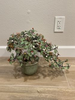 Vintage Large Chinese Jade Quartz Stone Glass Flower Bonsai Tree 11"x17" Celadon Pot Asian Art$100San Diego, CA