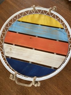 Round 19” Serving Tray Nautical Beach Shabby Chic Boho Outdoor Patio Rope Handles Large$20San Diego, CA