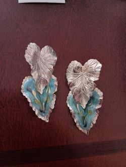 3/$10 🌟 Artistic Silver Tone Leaf Earrings with Blue Highlights$7Hasbrouck Heights, NJ