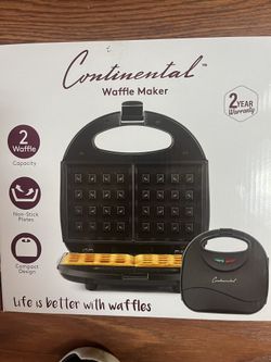 New Continental Waffle Maker Black 2 Waffles Capacity Non Stick Compact Travel$25Bronxville, NY