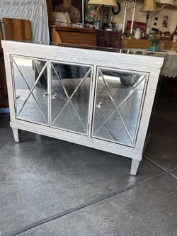 Solid Wood Beveled Mirror Cabinet With 3 Doors With Swarovski Handles, Excellent Condition Like New, Gray$120North Las Vegas, NV