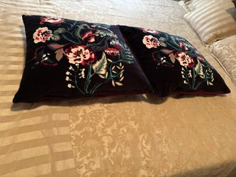 2 New Beautiful Matching Cushions With Zippered Black Suede Fabric With Attractive & Eye Catching Floral Prints,New $10North Las Vegas, NV