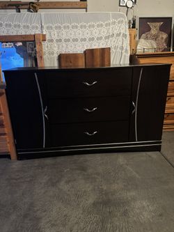 Black Solid wood black Dresser With 3 Long & Deep Drawers With Side Shelves With Brass Handles , Excellent Condition$130Las Vegas, NV