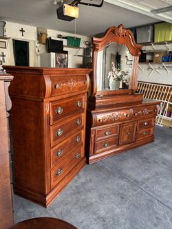 Long Dresser With Mirror & 6 Drawers & Shelves & Jewelry Storage & A Tall Upright Dresser With 5 Drawers ; Excellent Condition By Magnolia Classics $350Las Vegas, NV