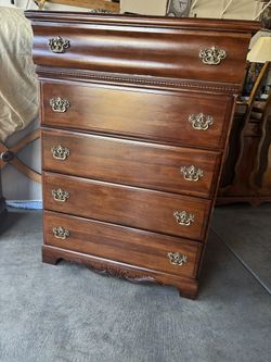 Tall Upright Solid Wood Dresser With 5 Drawers With Brass Handles;Excellent Condition By Vaughan Bassett $120North Las Vegas, NV