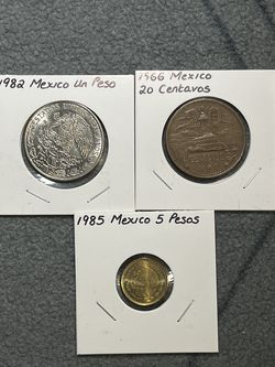 Mexico coins- 1982 un Peso, 1966 20 centavos & 1985 5 pesos$40Hayward, CA