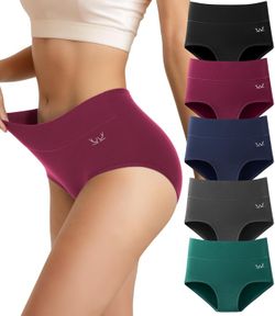 Women’s Cotton Underwear High Waisted Underwear Soft Briefs Full Coverage Ladies Panties 5 Pack(Regular & Plus Size)