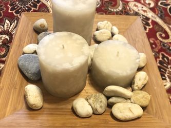 Decorative Wooden Candle Stand With Pebbles And 3 Candles$35Edinburg, TX