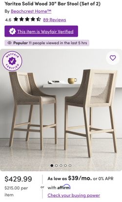 Two rattan upholstered counter stools new farmhouse contemporary light wood beige kitchen furniture$295El Paso, TX