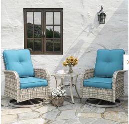 Outdoor 3 piece wicker patio set chairs swivel rocking backyard new table patio porch balcony summer$295El Paso, TX