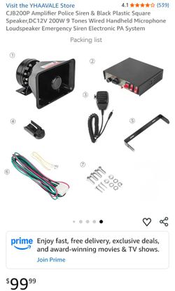 CJB200P Amplifier Police Siren & Black Plastic Square Speaker,DC12V 200W 9 Tones Wired Handheld Microphone Loudspeaker Emergency Siren Electronic PA S$80Smithtown, NY