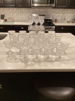 FOSTORIA ‘Argus’ crystal ($175 FOR ALL 26 OR $8 EACH) -10 iced tea glasses, 6 water glasses, 10 sherbet/dessert glasses (perfect condition - much more$8Lexington, KY