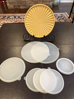 Tupperware Lids $5 EACH (10.5” gold Servalier Starburst lid, 2 - 9” clear, 1 - 7” clear, 3 - 5” clear, 1 clear Servalier Starburst lid 5”$5Lexington, KY