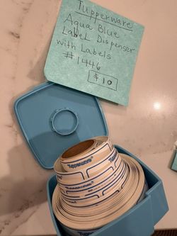 TUPPERWARE Blue plastic labels dispenser with roll of labels included.$10Lexington, KY