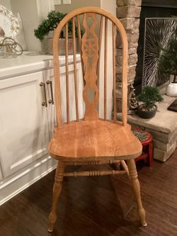 Oak Windsor-style chair with a fiddle back with keyhole splat 42”T x 18.5” W seat (great condition)$50Lexington, KY
