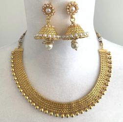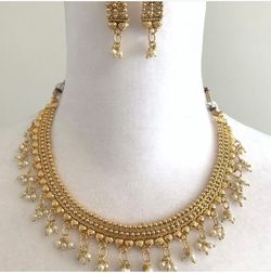 Golden With White Pearls Necklace With Earrings Set$20Jurupa Valley, CA