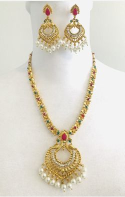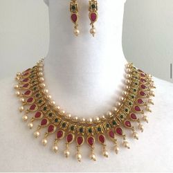 Gold Polish Maroon And Green color Necklace in Metal Alloy studded with Pearl$20Jurupa Valley, CA