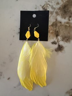 H&M Yellow Feather Dangle Earring Brand New$10Garden City P, NY