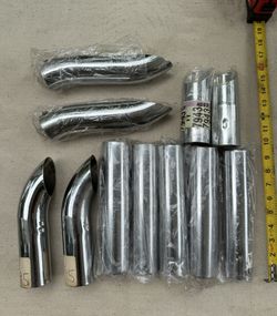Lot of 11 Chrome Exhaust Tips & Extensions – 2” Openings – Curved, Slant-Cut, & Straight$90Hinsdale, IL
