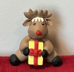 Christmas Pin/Brooch. Rudolph w/Wrapped Present. Polymer Clay. Vintage$6Leander, TX