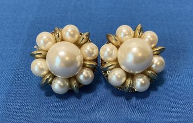 Pierced Earrings. Gold-Tone & Faux Pearl Cabochon Clusters. Studs. Vintage$18Leander, TX