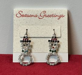Snowman Earrings. Pierced. Colored Glass Stones/Crystals. Vintage$6Leander, TX