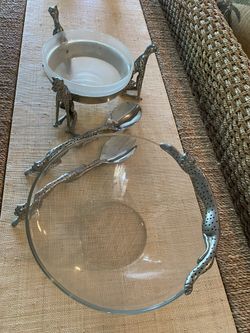Glass Bowls With Pewter Leopards And Salad Spoons$300Marco Island, FL