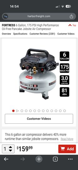 FORTRESS 6 Gallon, 175 PSI High Performance Oil-Free Pancake Jobsite Air Compressor$99Pomona, CA