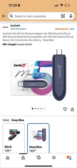 Carlinkit Mini SE Pro Wireless Adapter for OEM Wired CarPlay & OEM Wired Android Auto,Compatible with iOS 10 & Android 10 and Above, Fast Connection, $35Millbrae, CA