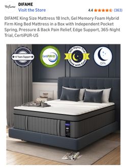 DIFAME King Size Mattress 18 Inch, Gel Memory Foam Hybrid Firm King Bed Mattress$300Dearborn, MI