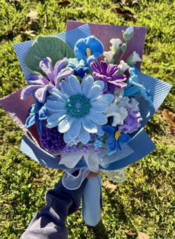 Crochet blue Gerbera, white and purple Iris bouquet$85Rosemead, CA