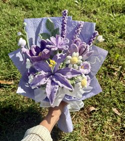 Crochet purple lily and white African Daisy bouquet$40Montebello, CA