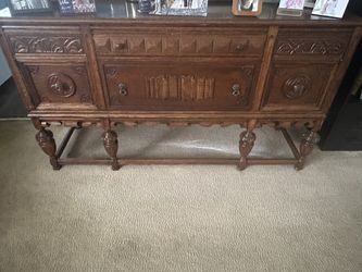 Antique Set Armoire Dining Room Table sideboard, Buffet Table, 100 Years Old Solid Oak Mint Condition Like New Inside And Out $500Red Bank, NJ